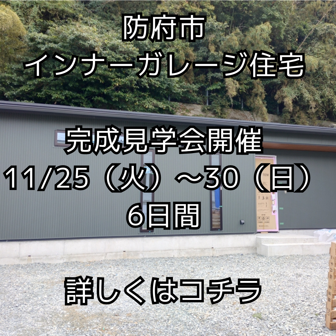 防府市 西浦 インナーガレージ住宅 完成見学会開催 防府市西浦 インナーガレージ住宅 完成見学会を開催します。 期間:11月25日(火)~11/30(日) 時間:10:00~16:00 *完全予約制につき「平家工房防府まで」 お電話:0835-28-1655 またはメール […]
