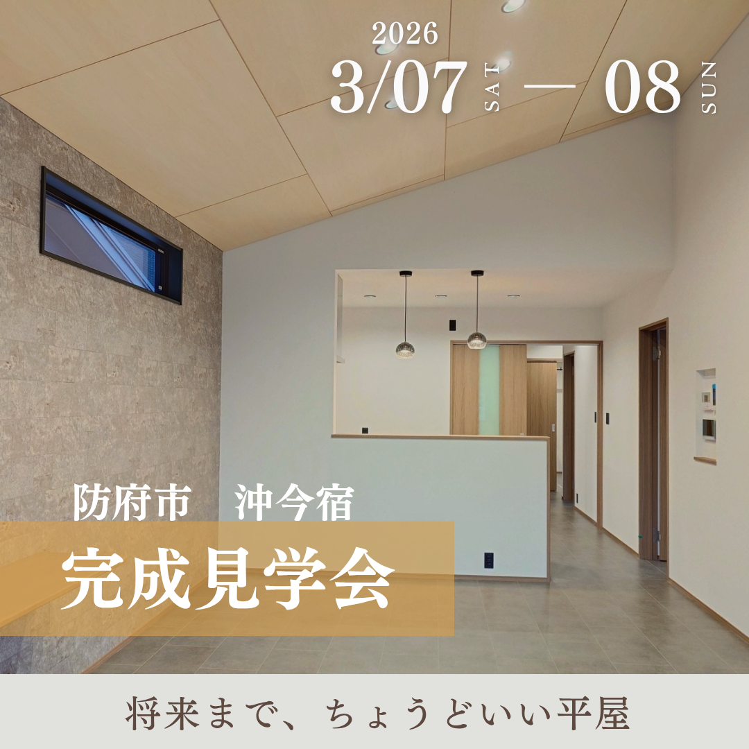 防府市・浜方 完成見学会開催 12月20(土)21(日) 2日間 防府市・浜方 完成見学会開催 12月20(土)21(日) 2日間 *完全予約制につきお電話またはメールにてお問い合わせ下さいませ。 ◆ダイナミックな吹き抜けと勾配天井 ◆階段で上がれてダイニングを見下ろせるロフト ◆使い […]