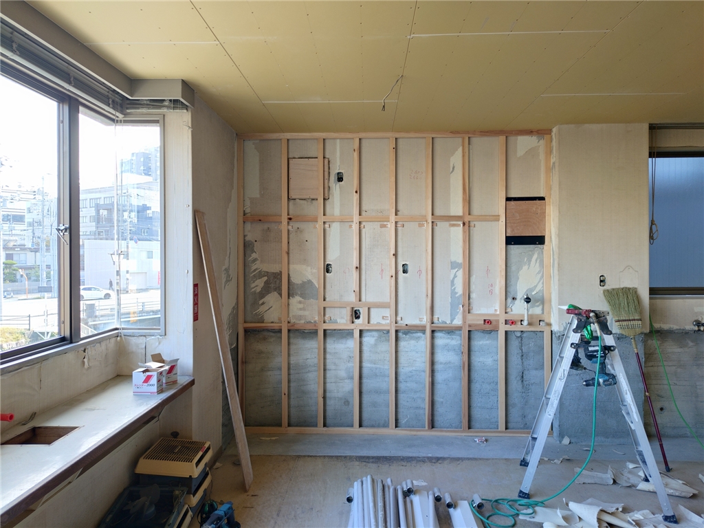 山口市 リノベーション工事 内装工事 2025.11.13 山口市 リノベーション工事 内装工事 RC(鉄筋コンクリート)造の為、機器撤去後の隠蔽対策としてふかし壁を作成しています。 これによりコンセントの移設やガス管等の不要になった設備を隠す事ができます。 お知らせに戻る