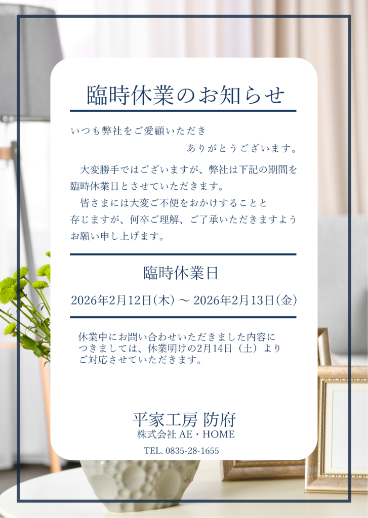 平家工房防府。山口県防府市の株式会社AE・HOME(エーイーホーム)。