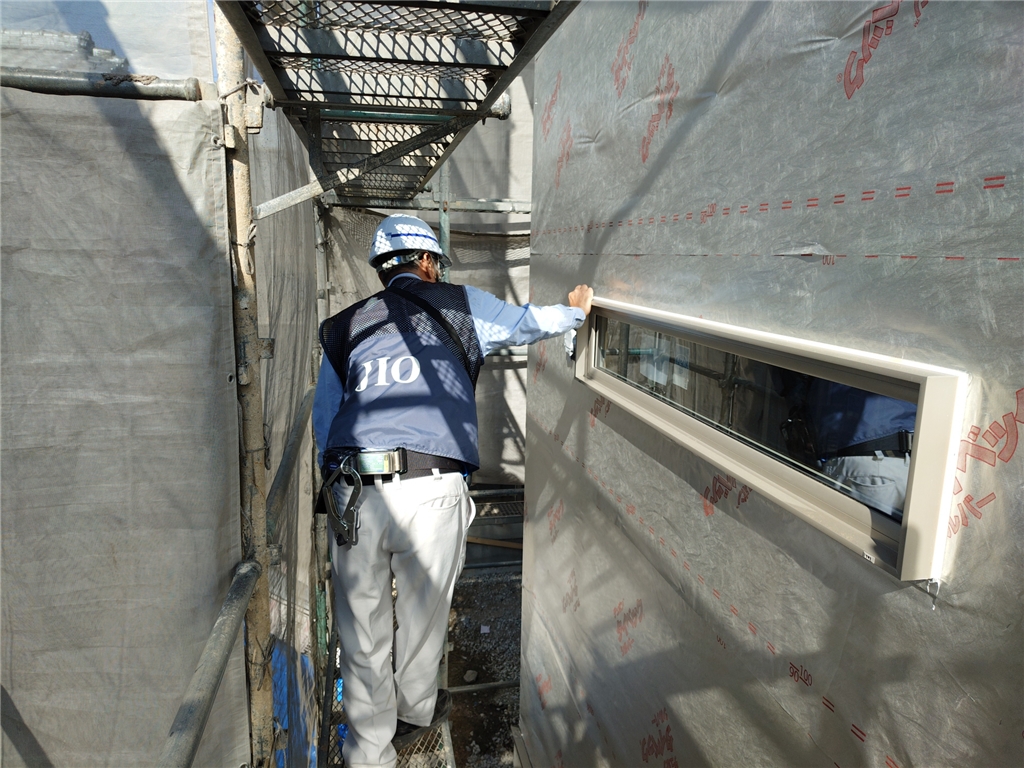 第三者機関JIOによる検査で雨水侵入(雨漏り)に関わる外装下地が正しく施工されているかをチェックします。