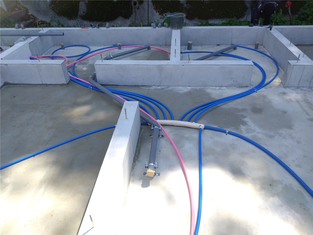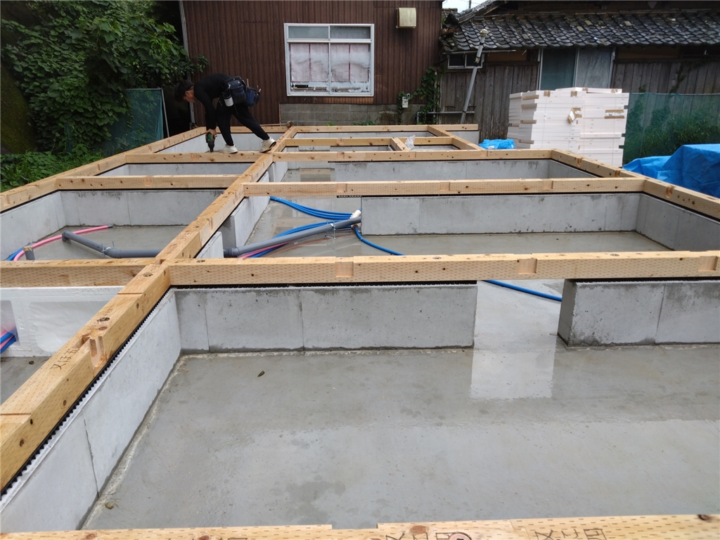 防蟻処理・床下断熱材を施工し上棟準備へと進みます。