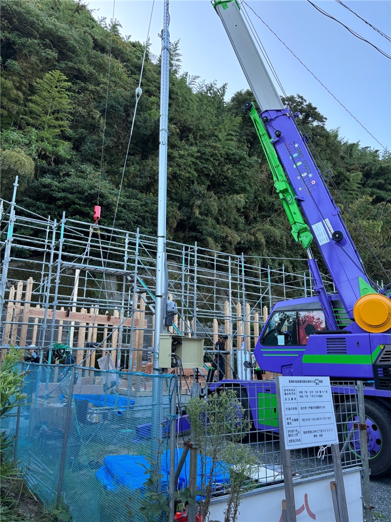 防府市 平屋・インナーガレージ住宅 棟上げを行いました。 2025.09.22 防府市S様 上棟おめでとうございます。 平屋・インナーガレージ住宅 棟上げを行いました。 天候にも恵まれて順調に工事を進める事ができました。 お知らせに戻る