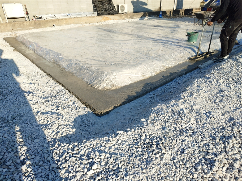 砕石敷き~防湿シート施工~捨コン打設を行いました。