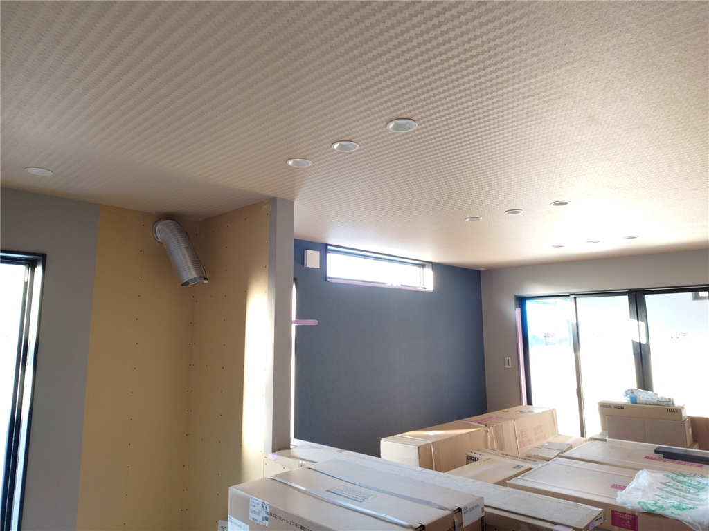 防府市 インナーガレージ住宅 内装クロス工事②