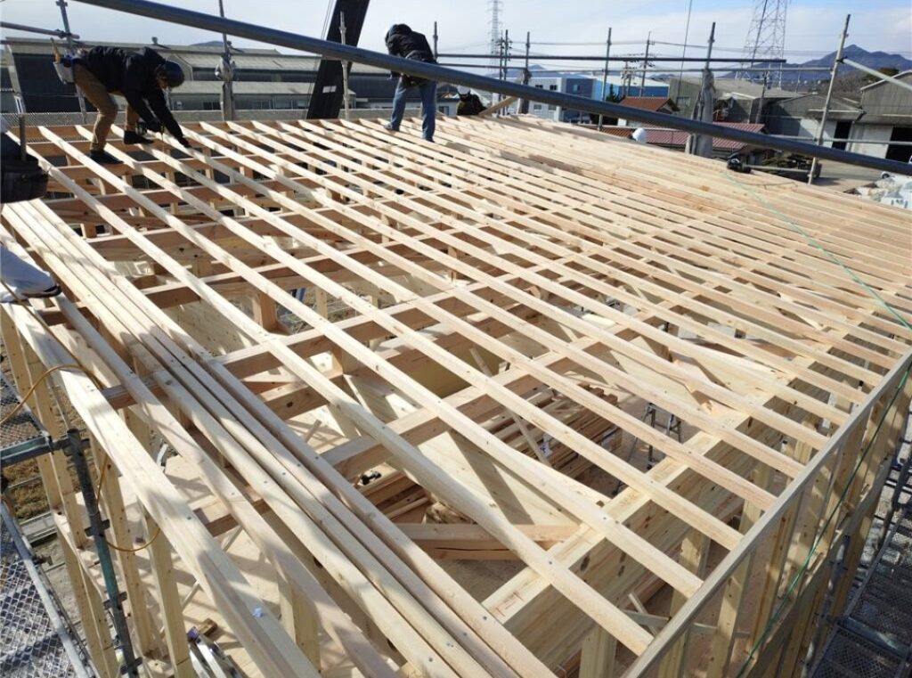 棟上げ(上棟)とは、木造建築を建てる際に、屋根の一番高い位置に
