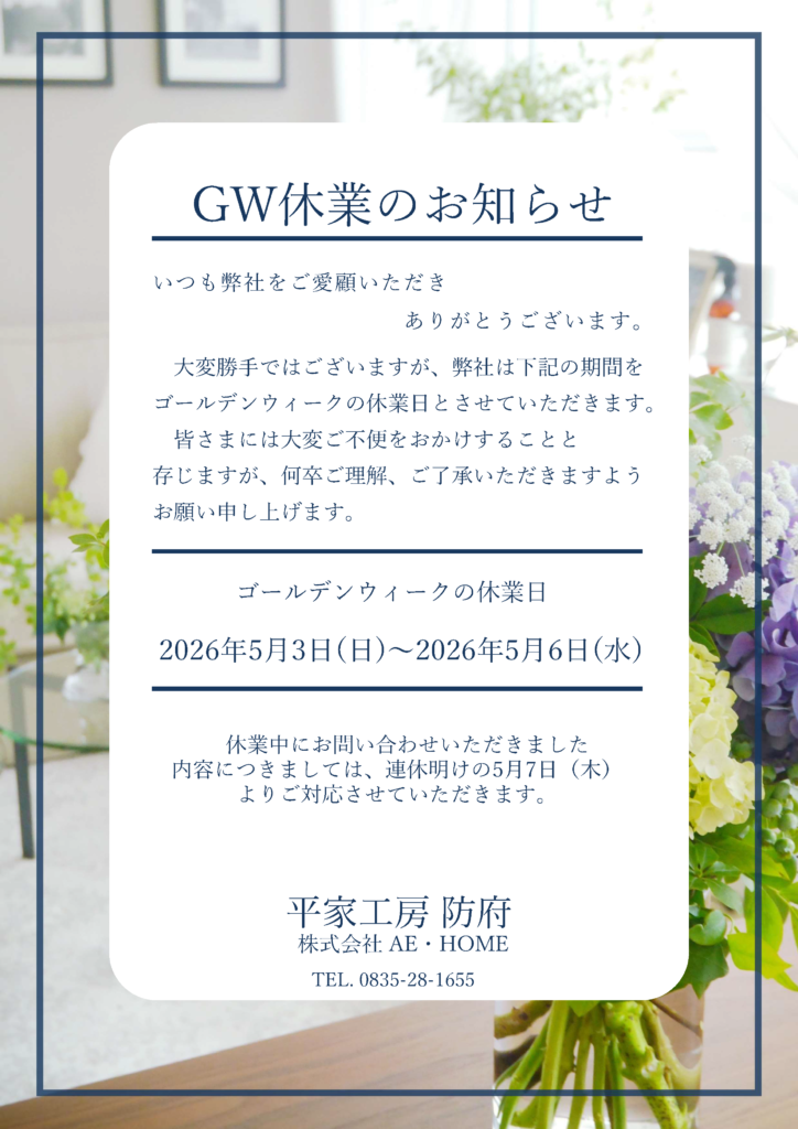 平家工房防府。山口県防府市の株式会社AE・HOME(エーイーホーム)。