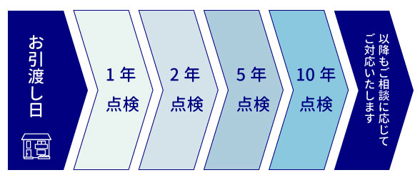 完成引渡し時から最長10年間に4回の定期点検を行います。